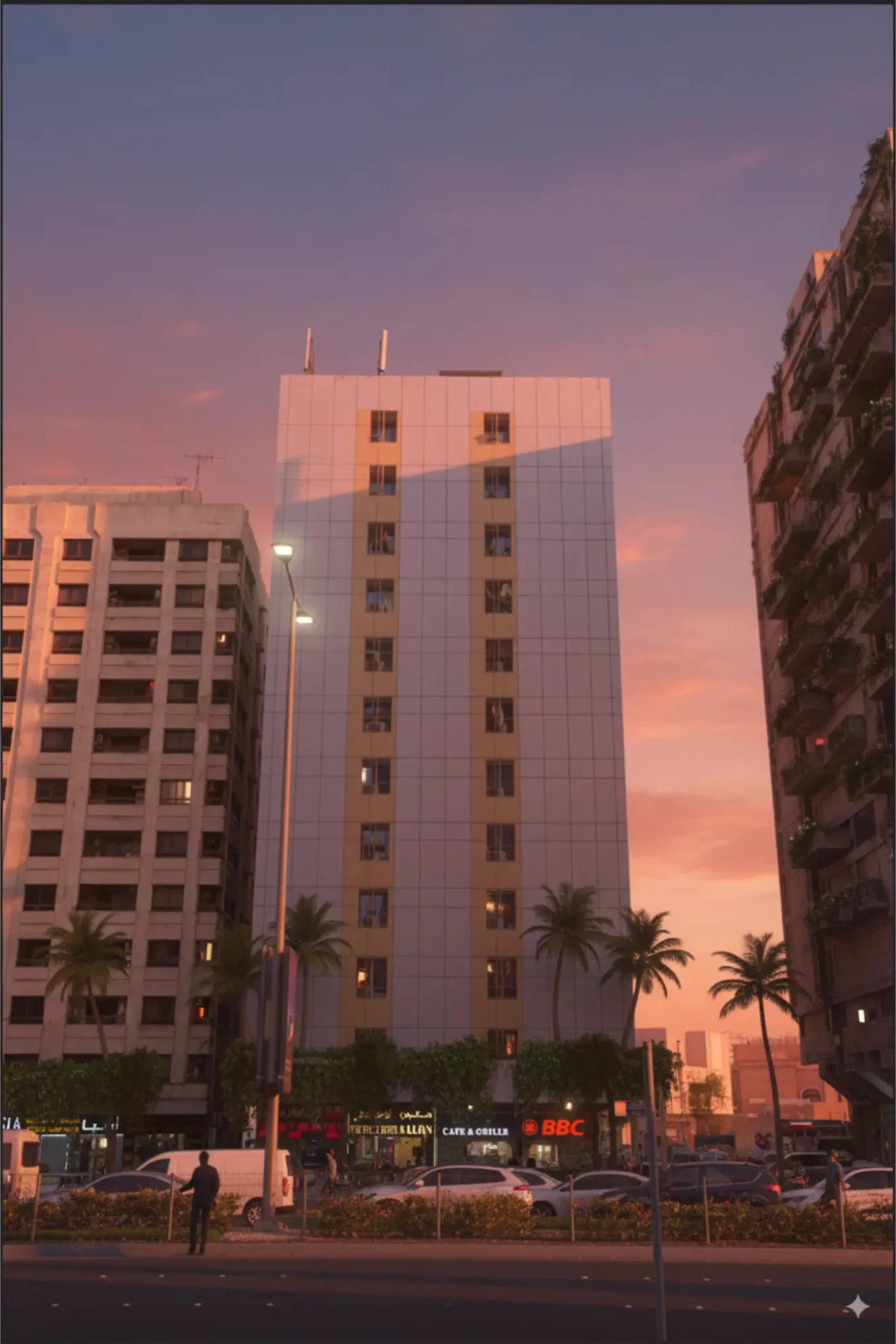 A commercial building comprising two basements, a mezzanine, and nine floors, executed with complete civil and MEP works.